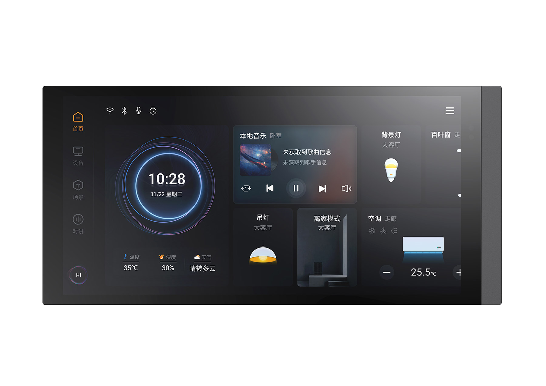 涵蓋照明、窗簾、空調(diào)、新風(fēng)、溫控、背景音樂(lè)、空氣質(zhì)量顯示、RGB/RGBW/RGBCW等全宅智能控制功能。