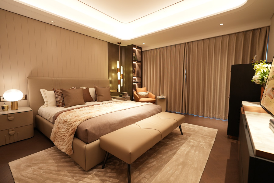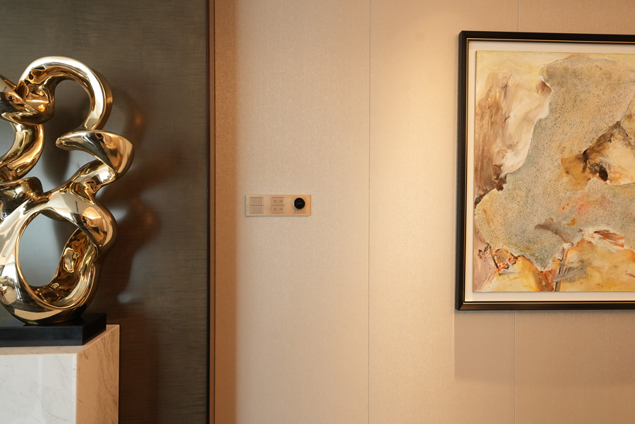 為匹配住宅的高奢屬性和不同的家裝風(fēng)格,GVS汲取中西美學(xué)的前沿設(shè)計,為外灘壹號院專屬定制了智能面板,無論是顏色、鐳雕及親膚感金屬的選材都完美共生于墻面之上,呼應(yīng)了整個住宅的尊貴雅致基調(diào)。